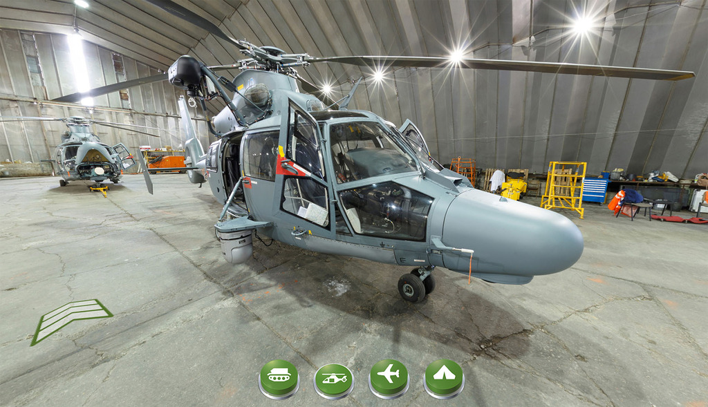 The solution consists of 3 products: a virtual online tour, a virtual reality tour (Oculus platform), and a 3D shooting game designed for virtual reality (Oculus platform). In the virtual tour (for both web and VR), there is an armored personnel carrier M113, a helicopter, and a military aircraft (Spartan). High-quality panoramic images were created using stereoscopic photography, so that depth can be perceived when viewed in the VR program. The online virtual tour can be found here. The 3D VR game depicts a modern-day training session. The environment is modeled as a shared training shooting range. The player shoots from an M3 Browning machine gun mounted on the M113 armored vehicle. The game has been very successful; its mobility allows the museum to take it on various trips, and its appearance and the opportunity to compete for the highest score make it attractive to both young people and adults.